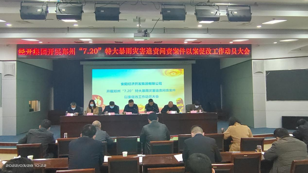 按照市紀(jì)委監(jiān)委深化以案促改做好整改工作的要求,集團(tuán)開展鄭州“7.20”特大暴雨災(zāi)害追責(zé)問責(zé)案件以案促改工作。為扎實(shí)開展此項(xiàng)工作,會(huì)議要求:以鄭州“7.20”特大暴雨災(zāi)害追責(zé)問責(zé)案件為鏡鑒,持以“案”為基礎(chǔ)、以“促”為關(guān)鍵、以“改”為目標(biāo),認(rèn)真梳理、深入查找災(zāi)害暴露出的貫徹落實(shí)習(xí)近平總書記關(guān)于防汛救災(zāi)工作重要論述和指示批示精神不到位、落實(shí)防汛救災(zāi)主體責(zé)任不到位、履職盡責(zé)不到位等主要教訓(xùn),堅(jiān)持問題導(dǎo)向,深挖問題根源,以案促改、以案促治,引導(dǎo)廣大黨員干部牢固樹立人民至上、生命至上理念,著力提高應(yīng)急處突工作能力,切實(shí)增強(qiáng)風(fēng)險(xiǎn)意識(shí)和底線思維,嚴(yán)格落實(shí)防汛救災(zāi)主體責(zé)任,守土有責(zé)、守土盡責(zé)。