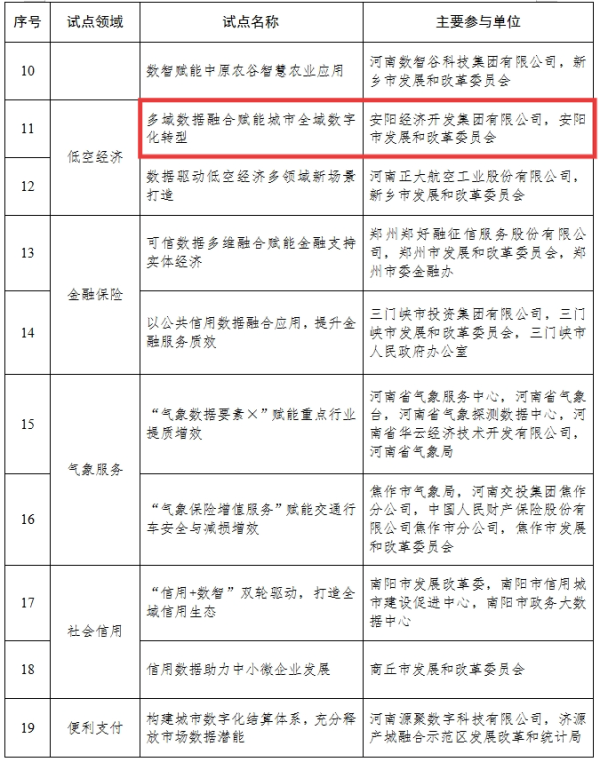 近日,河南省發(fā)展和改革委員會(huì)發(fā)布《關(guān)于印發(fā)首批河南省重點(diǎn)領(lǐng)域數(shù)據(jù)資源開發(fā)利用試點(diǎn)名單的通知》,集團(tuán)下屬經(jīng)開信息化公司申報(bào)的“多域數(shù)據(jù)融合賦能城市全域數(shù)字化轉(zhuǎn)型”(低空經(jīng)濟(jì)領(lǐng)域)項(xiàng)目成功入選全省首批數(shù)據(jù)資源開發(fā)利用試點(diǎn)。