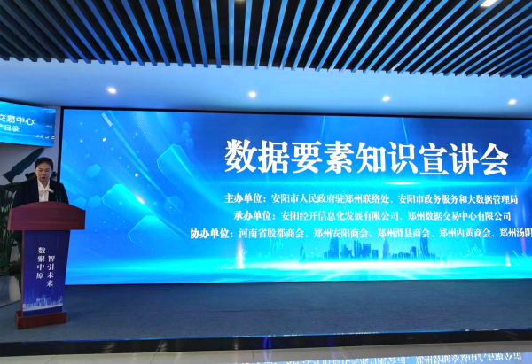 4月20日,集團(tuán)信息化公司和鄭州數(shù)據(jù)交易中心共同組織的“數(shù)據(jù)要素知識宣講會”在鄭州中原數(shù)據(jù)產(chǎn)業(yè)大廈隆重舉行。安陽市人民政府駐鄭州聯(lián)絡(luò)處主任張雙印,安陽市政務(wù)服務(wù)和大數(shù)據(jù)管理局副局長常明華出席并發(fā)表講話。會上還邀請了河南省殷都商會等5家安陽籍商會成員及企業(yè)代表參加活動。