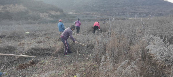(林州市東崗鎮(zhèn)連翹種植基地,采用人工清理或機(jī)械作業(yè)的方法,清除林下可燃物,以滿足林下種植條件。)