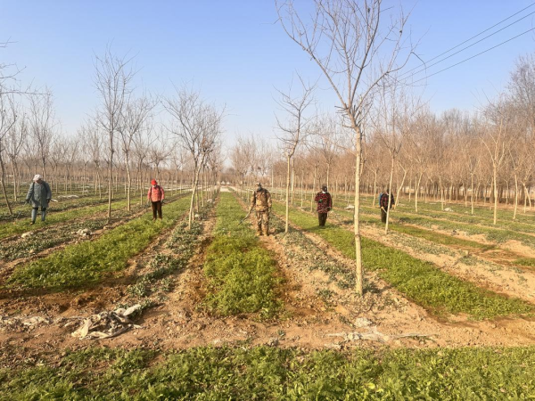 根據(jù)不同項(xiàng)目的管護(hù)要求,采取了科學(xué)有效的管護(hù)措施。在柏莊鎮(zhèn)藥用牡丹育苗基地,項(xiàng)目團(tuán)隊(duì)積極把握農(nóng)時(shí),全面推行精準(zhǔn)除草措施,組織人員及時(shí)清除地膜、打除草劑,確保藥用牡丹擁有優(yōu)良的生長環(huán)境。磊口鄉(xiāng)大櫻桃種植區(qū)域已開始進(jìn)行全面消毒滅菌工作,通過科學(xué)的病蟲害防治手段,保障果樹花期安全及產(chǎn)量、品質(zhì)的提升。東崗鎮(zhèn)連翹項(xiàng)目在前期種植基礎(chǔ)上,即將啟動(dòng)精細(xì)化補(bǔ)植計(jì)劃,依據(jù)項(xiàng)目所在地土壤墑情和苗木生長實(shí)際情況,合理配置資源,對缺株區(qū)域?qū)嵤┚珳?zhǔn)補(bǔ)種,確保種植基地連翹苗木分布均勻,生長健壯。