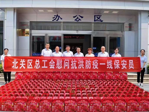 8月9日、10日北關(guān)區(qū)總工會副主席薛梅、保障部部長司尚雯來到安陽市洹河保安服務(wù)有限責(zé)任公司,送來抗洪防疫慰問品鮮桃500多箱,向堅守崗位、奮戰(zhàn)一線的保安隊員進行慰問,提醒大家做好防控工作的同時一定要做好自身防護。